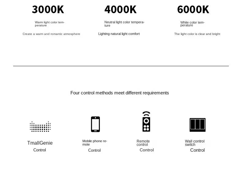 3. Intelligent dimming device that can adjust color temperature and brightness at any time through remote control, achieving free dimming from 0 to 100.