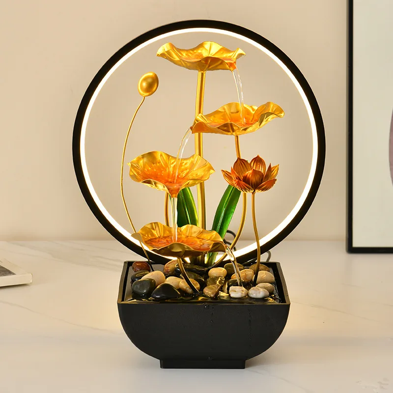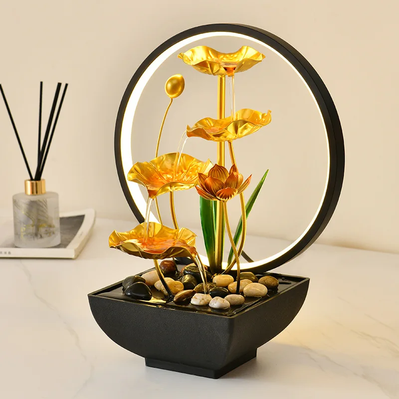 2025 Tabletop Waterfall Fountain Led Ring Light Indoor Water Fountain Home Decor Items