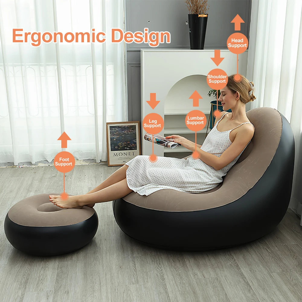 Portable Inflatable Leisure Bean Bag Sofa Lazy Sofa With Footstool Indoor Outdoor Seat Foldable Camping Couch Garden Chair Pouf